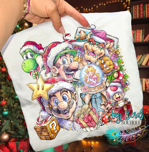 Christmas Polaroid Mario Solid tee